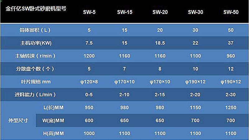 金仟億SW臥式砂磨機主要特點: